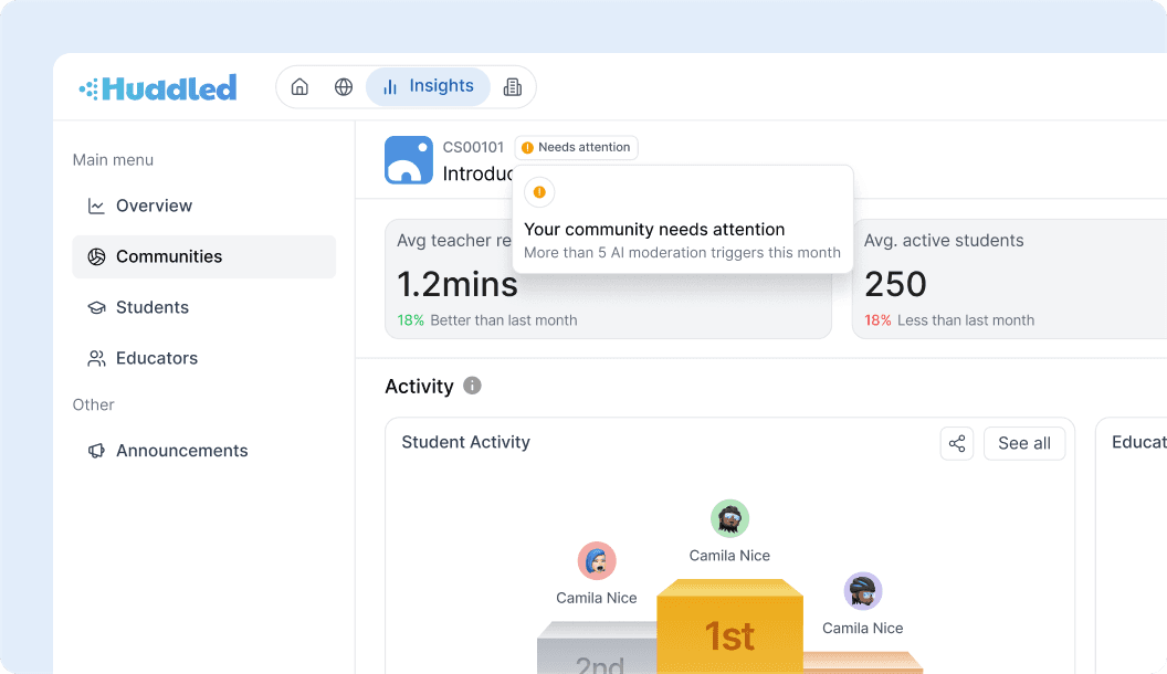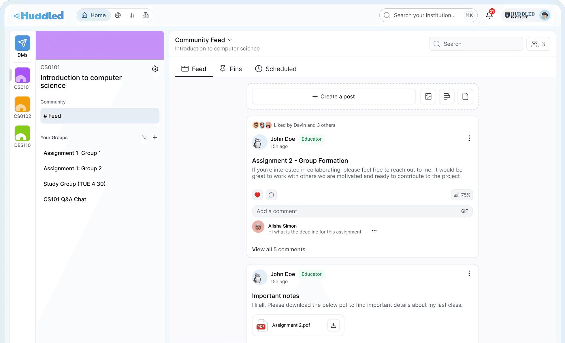 Unfortunate circumstances lead to Huddled no longer operating as a business. However, we have made the right decision to open up our work and allow for institutions and students to implement, build on top or user the tool completely free.